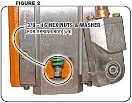 - Install rod spring [#31], (1) flat washer [#38] and (2) full hex nut [#58]. Make the nuts flush with the end of the rod. See Figure 2.