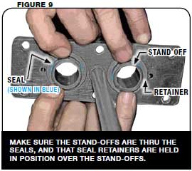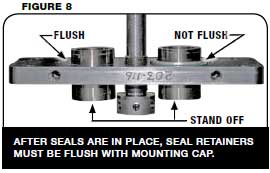 - Next install new seals and retainers into shaft seal cap [#11] with spacer tube [#7] and stand off [#8] and install cap according to Figures 7 – 10.
