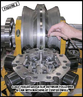 Internal wear is evident when, after checking the clearance, the reading is above 0.0013″. The factory setting for clearance between the cam on the follower is 0.0001″ – 0.0013″.